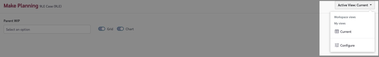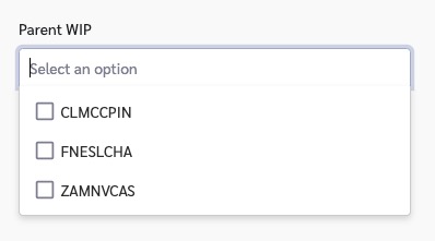 Select the Parent WIP Item (work in progress item) you would like to work with from the 'Parent WIP' selector. You can select one, or many, WIPs to display at a time.