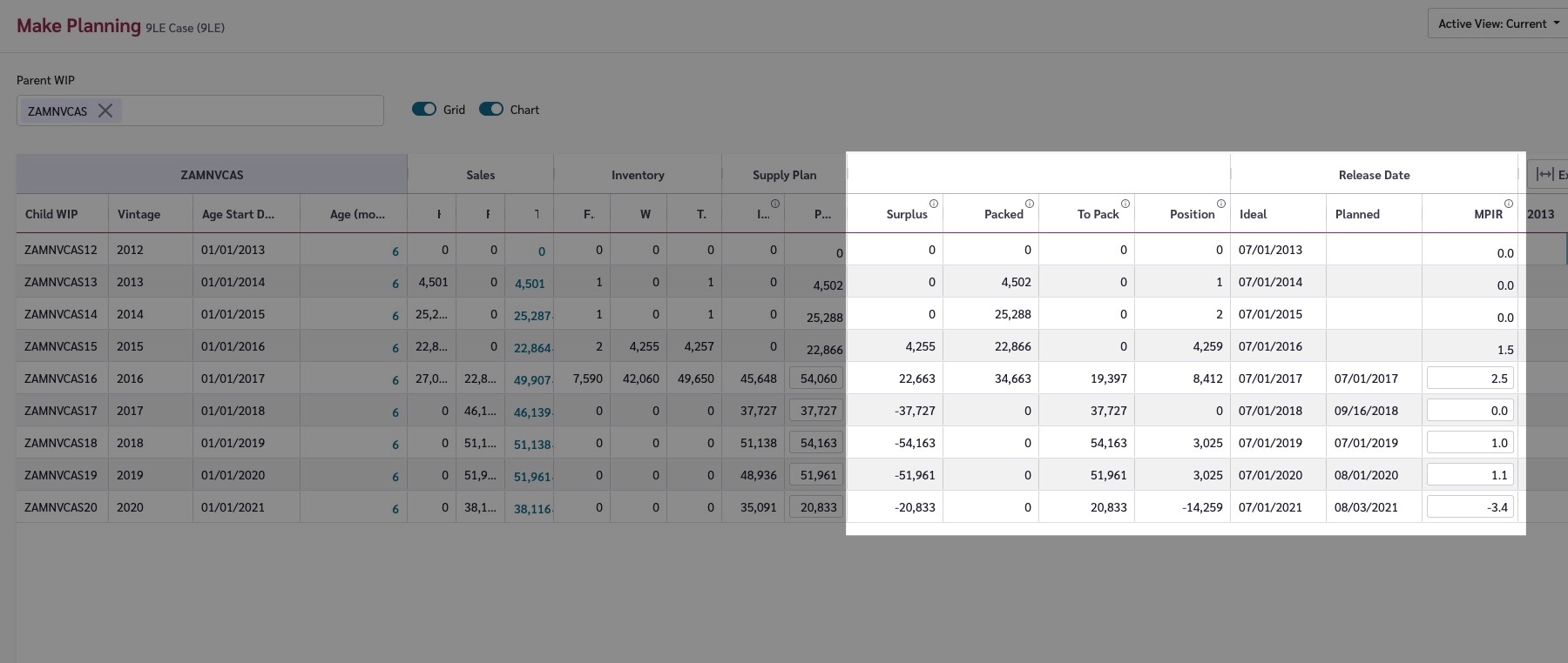 2. Planned - the date the vintage will be released to meet forecast demand, based on the current planned supply. (And is determined by adding the MPIR value to the Ideal Release Date.
