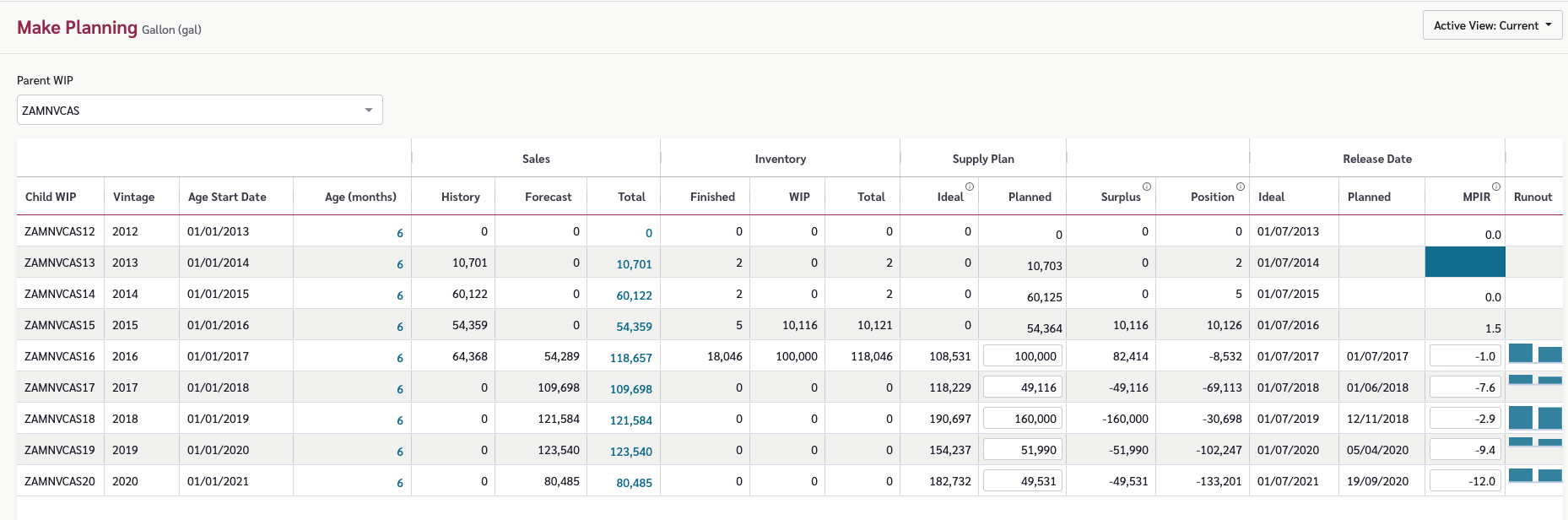 This may not be how much the winemakers actually plan to make though, so let's start by looking at the 'Planned' supply plan/make.