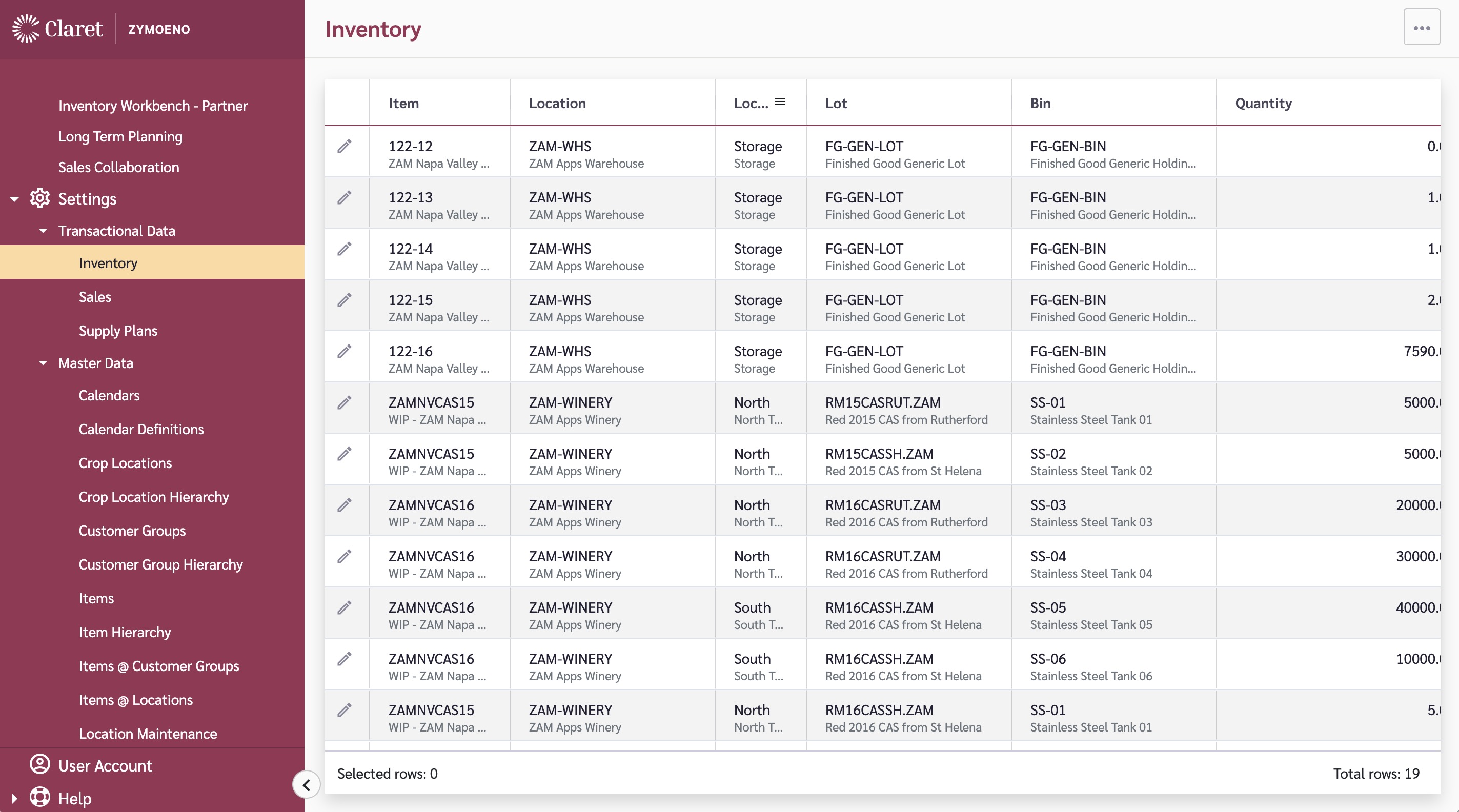 To update vintage and routing details, go to the. WIP Aged Hierarchy type on the [Items](https://docs.claret.app/master-data/items) page and edit the items you wish to change.