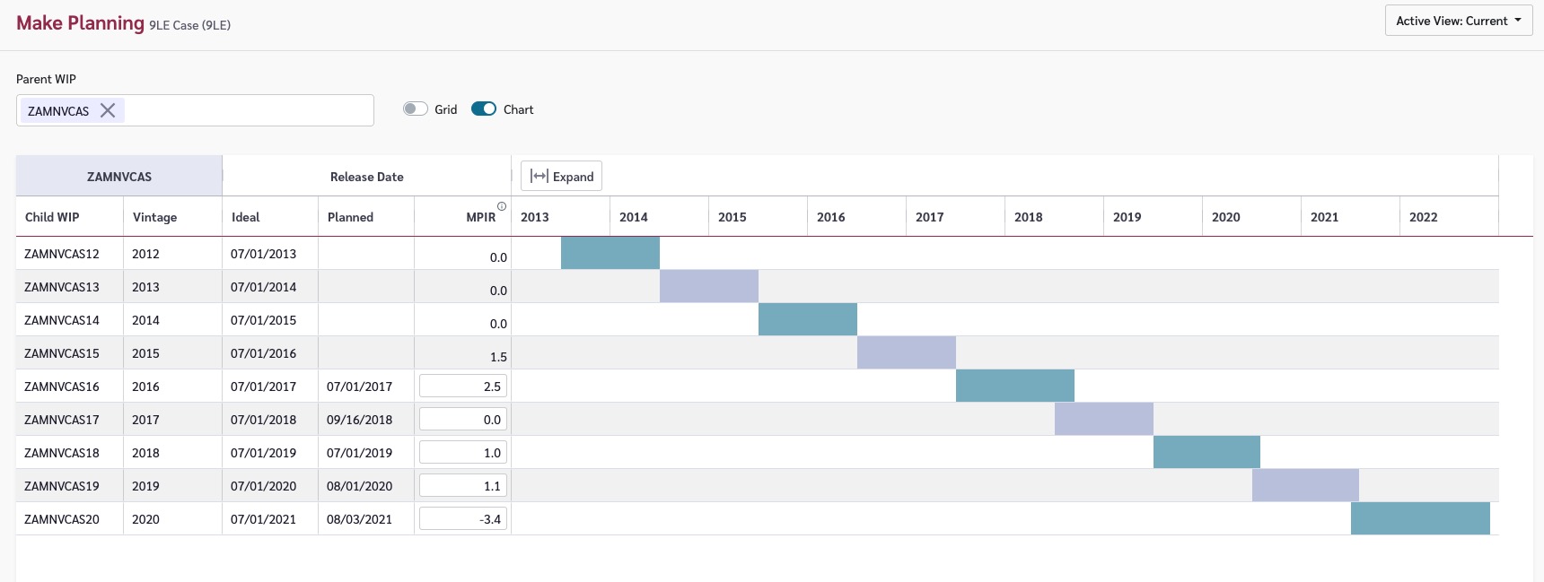 The Release Date' data then shows us the impact on our release dates with our current 'Planned' make.