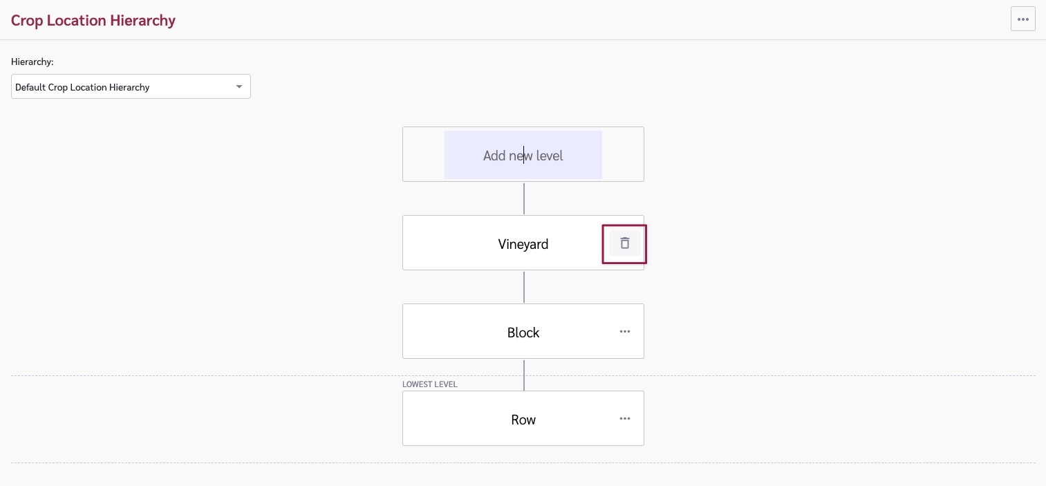 Once you have built your hierarchy, you are ready to add specific crop locations. See [Crop Locations](https://docs.claret.app/master-data/crop-locations)