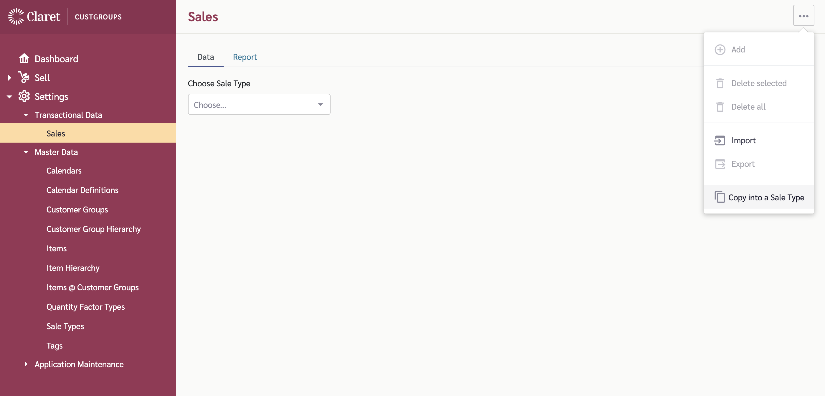 To access this function, select the Options menu (ellipses) at the top of the 'Sales' page.