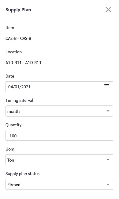 4. Then choose the "Location" for this new Supply Plan record if one is required.