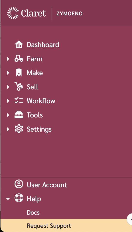 * **Help** - At any stage you can request support by expanding the 'Help' menu item and selecting 'Request Support'.